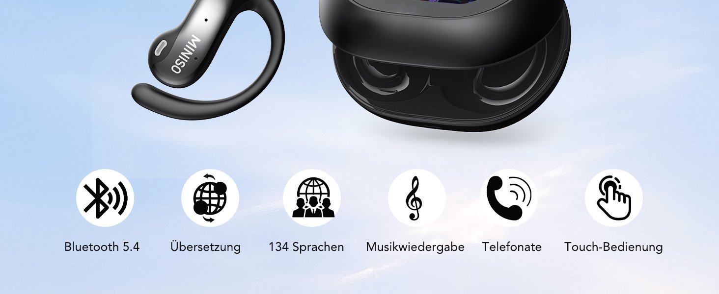 30 reviews for MINISO MS188 AI Bluetooth-Headset mit Echtzeit-Übersetzungsunterstützung für 136 Sprachen, kostenlose App, Vollfarb-Touchscreen, zwei Mikrofone mit Geräuschunterdrückung, 60 Stunden Akkulaufzeit, IPX5-Einstufung, geeignet für Training, Reisen und Laufen